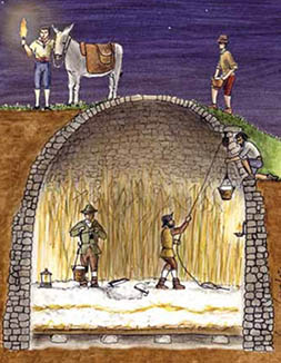 Dibujo de los trabajos realizados en los pozos de nieve. Fuente: Archivo Comarca del Somontano de Barbastro.