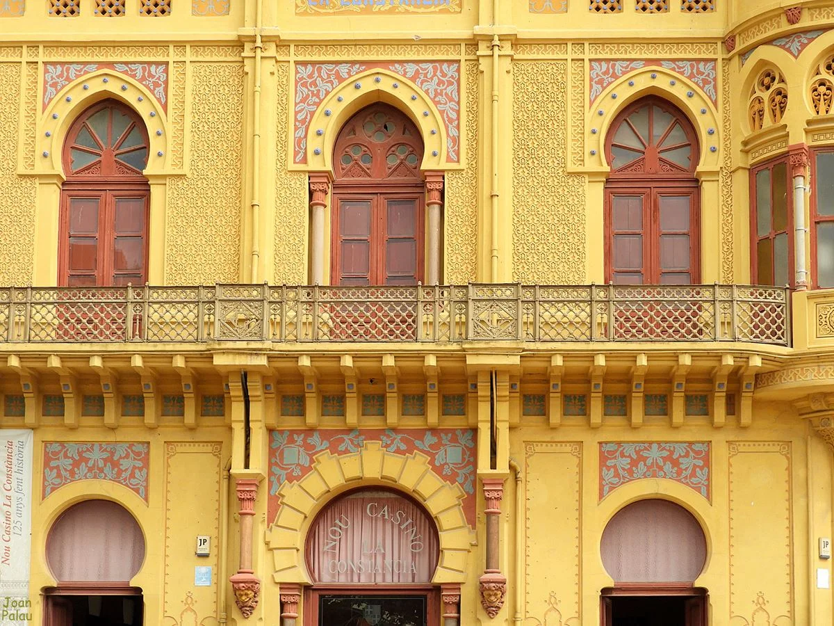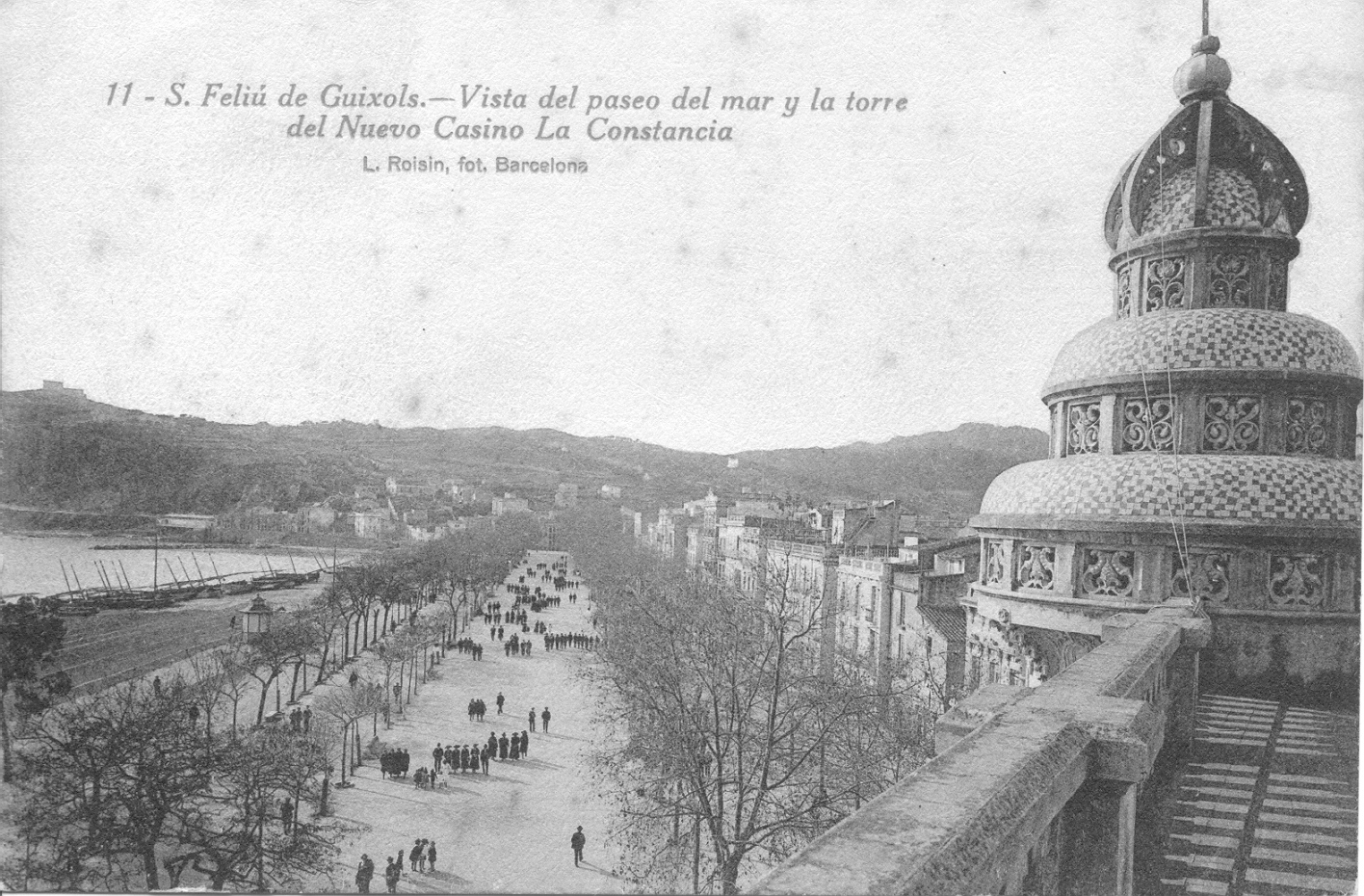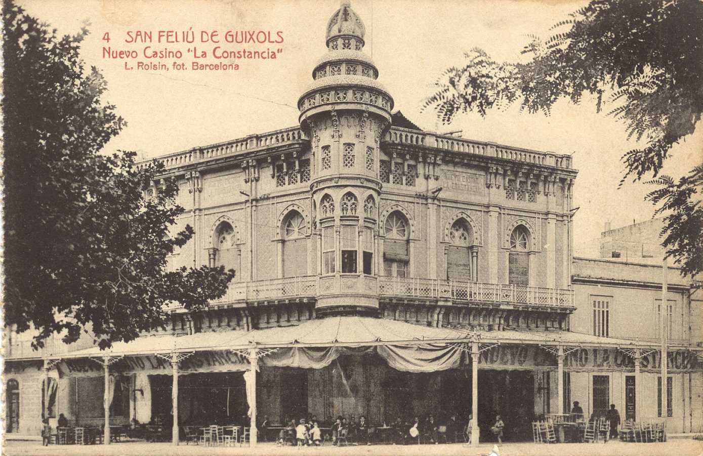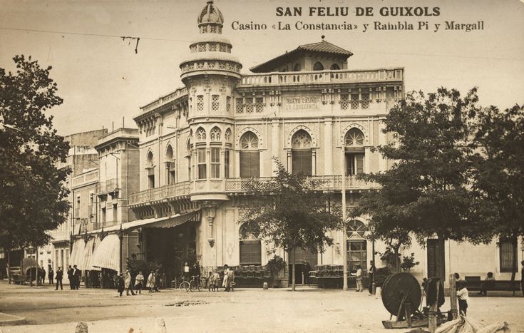 El edificio original del Casino de Sant Feliu de Guíxols se construyó en 1888 peseta a peseta. Los socios no disponían del capital suficiente como para levantar un edificio de estas características, así que fue necesario vender participaciones con las que poder sufragar los gastos. En pocos meses estuvo en pie y listo para funcionar. Con el aumento de socios fue necesario realizar una primera ampliación. Esta se llevó a cabo en 1899 y dio como resultado una nueva fachada lateral y la característica torre con triple cúpula. Una segunda ampliación se realizó en 1929 y desde entonces el edificio no ha vuelto a crecer.