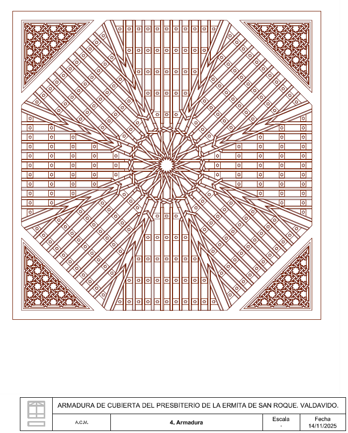 Desde el Centro de Oficios de León, proponen la siguiente armadura de cubierta del presbiterio para la ermita. ¡Ojalá se pueda ejecutar!